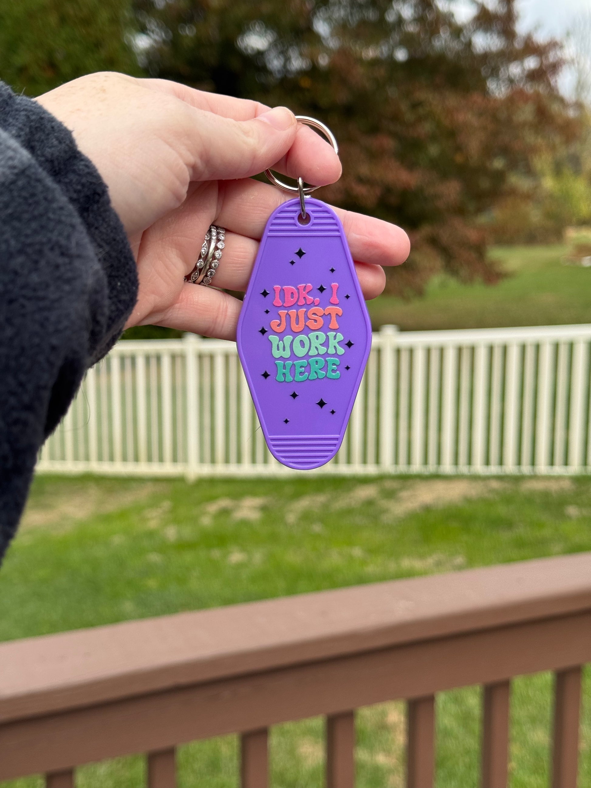This sassy keychain is perfect for those who just work here. It exudes the laid-back vibes of someone who doesn't take themselves too seriously. Add a playful touch to your keys with this quirky accessory. (No need to thank me, I just work here!)